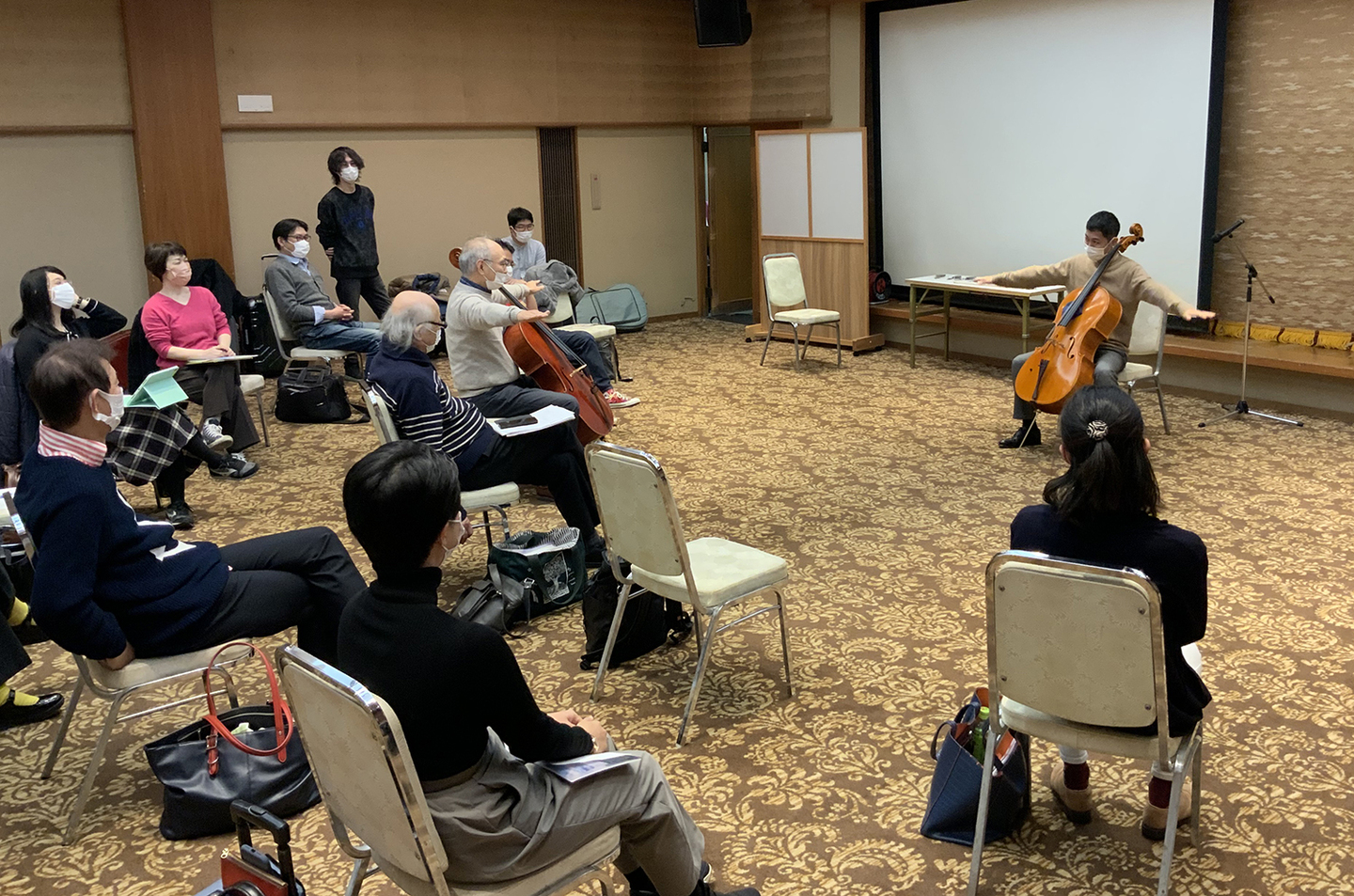 2022年12月1日~2日にかけて、チェロ科研究会を開催しました。会場となりました長野県上諏訪温泉「鷺の湯」で行なう対面形式(一部のプログラムはオンラインも含めたハイブリッド形式)の研究会は、実に3年ぶりのことで、全国各地から集結した約20名の指導者の喜びもひとしおでした。