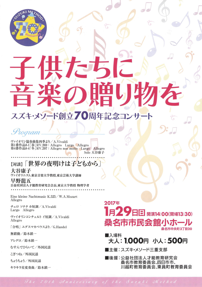 子どもたちに音楽の贈り物を〜スズキ・メソード創立70周年記念コンサート