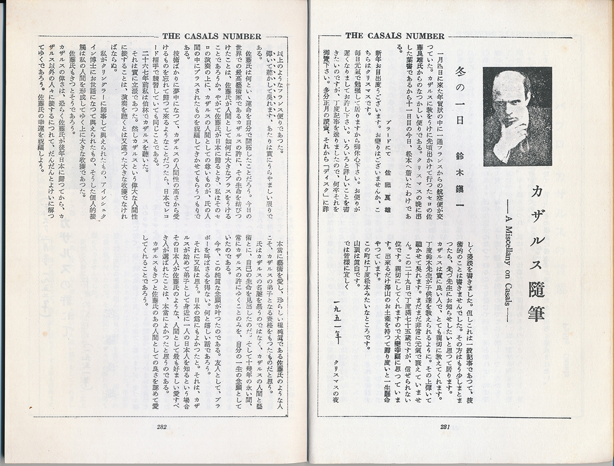 1951年秋、永年の思慕と憧憬を胸にたたえて、カザルスのもとに東洋人最初の弟子として留学された佐藤良雄先生は、師から受けた薫陶の数々を鈴木先生に、そして友人であり、後に才能教育研究会常任理事となる青木謙幸氏に、幾通もの手紙を送りました。