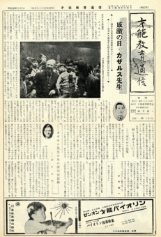 | 1961年4月16日 | カザルス来日。文京公会堂にて400人の子どもたちの演奏を聴き、歴史に残る重要なメッセージを語った。「皆さん、音楽はやがて世界を救うであろう」 | ||||