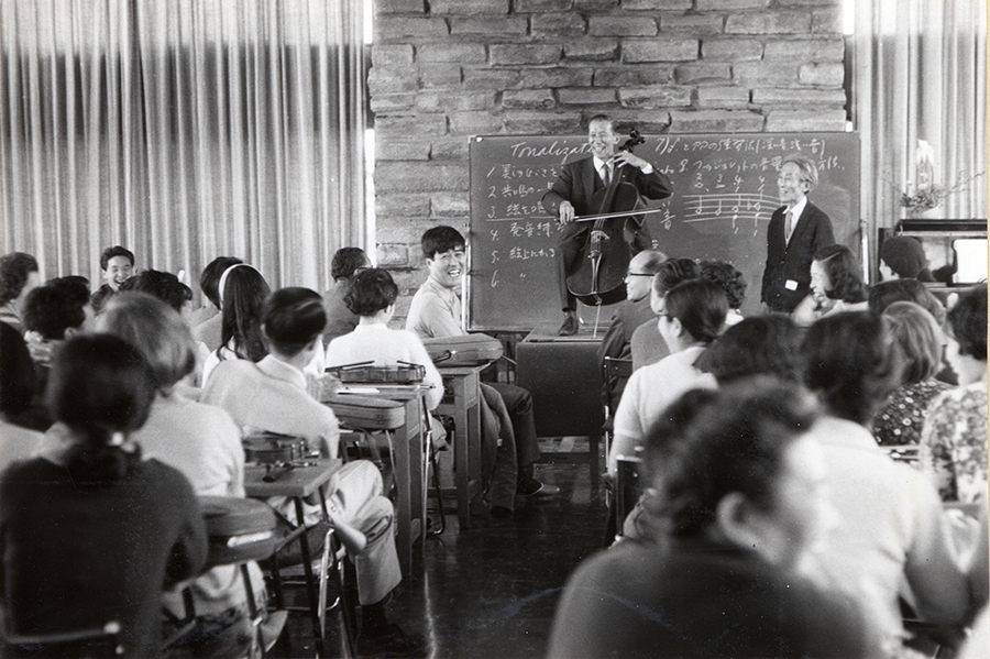 | 1968年 | 全国指導者研究会(天城)で、鈴木先生がチェロのデモンストレーション。 | ||||