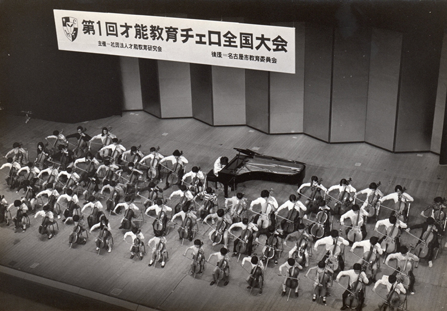 このように、海外から訪れる高名なチェリストが続く中、全国各地での教室展開も着実に行なわれ、チェロ科でも全国大会を開催しようという気運が生まれてきました。そこで、開催されたのが、1975年の第1回チェロ全国大会です。鈴木先生の生まれ故郷である名古屋の愛知県文化講堂で行なわれました。