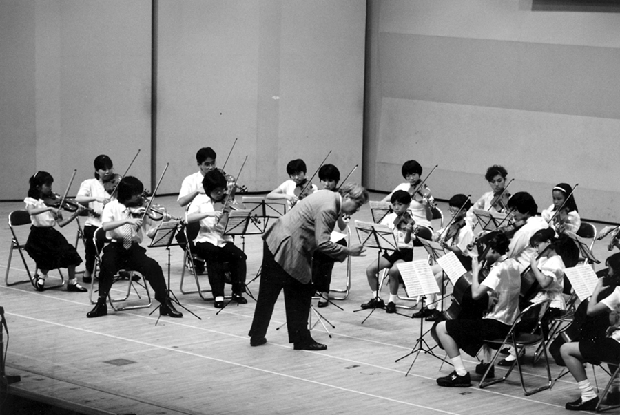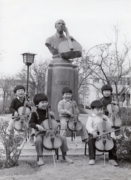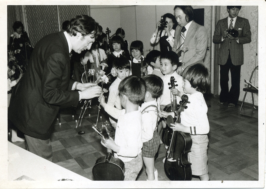 | 1974年 | ソ連の名チェリスト、ダニール・シャフランの来日コンサート終了後、ステージで子どもたちの演奏を聴いていただく。シャフランの強い希望により、2年後に再会が実現した。 | ||||