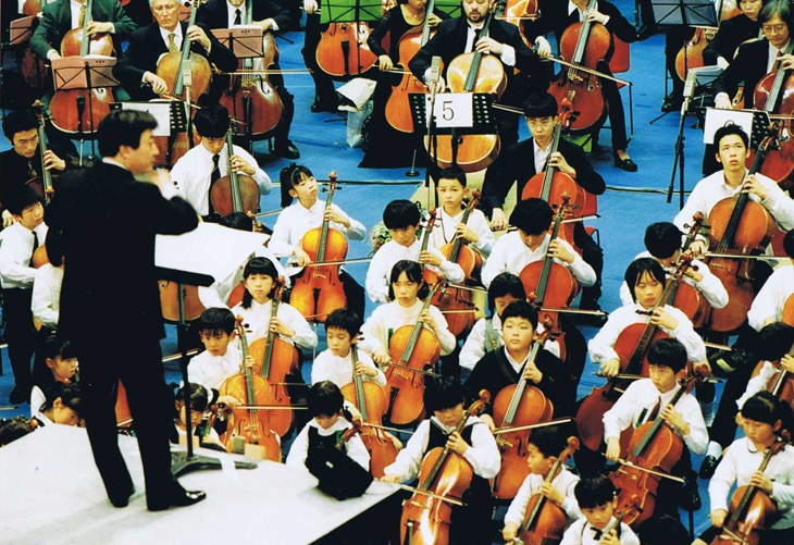 | 1998年11月29日 | 神戸ワールド記念ホールで開催された「第1回1000人のチェロ・コンサート」にチェロ科の生徒50名、指導者20名が参加。アンコールにも、スズキの子どもたち100名(高円宮様ご一家4名様を含む)が参加し、合計170名に。1,013人の記録達成に大きく貢献した。 | ||||