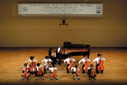 | 2005年5月20日~22日 | 「インターナショナル・チェロ・コングレス in 神戸2005」を国際チェロアンサンブル協会と共催。あわせて、「10チルドレンコンサート」、チェロ科創設50周年記念第23回チェロ全国大会をポートピアホール(神戸市)で開催。「第3回1000人のチェロ・コンサート」にも多数の生徒が参加した。→第23回プログラム | ||||