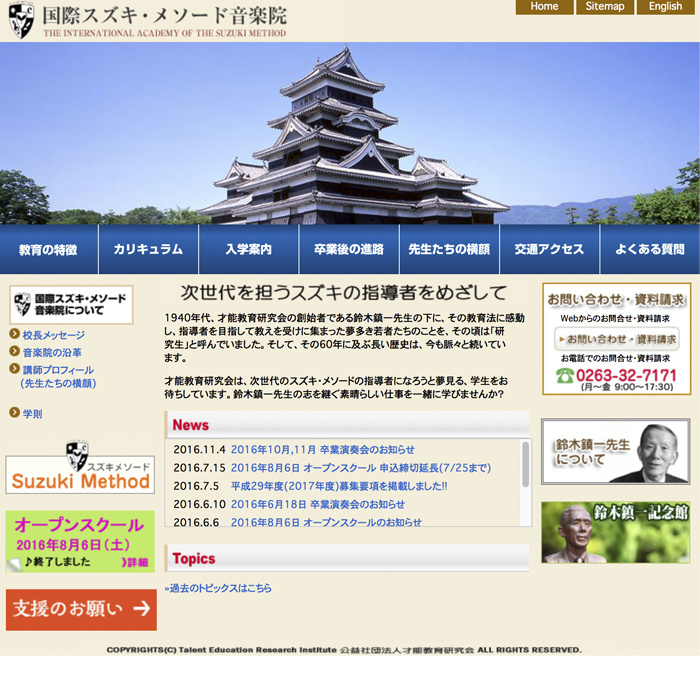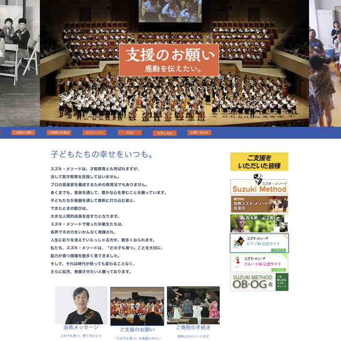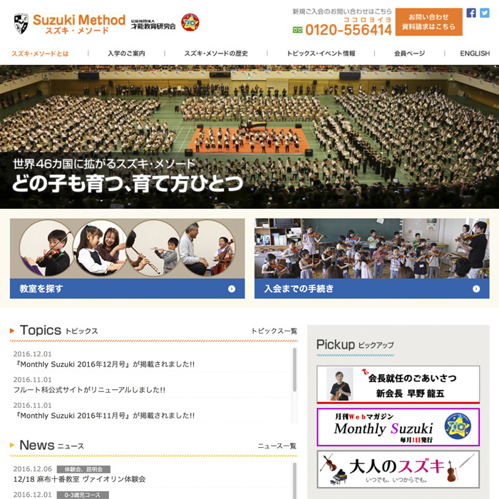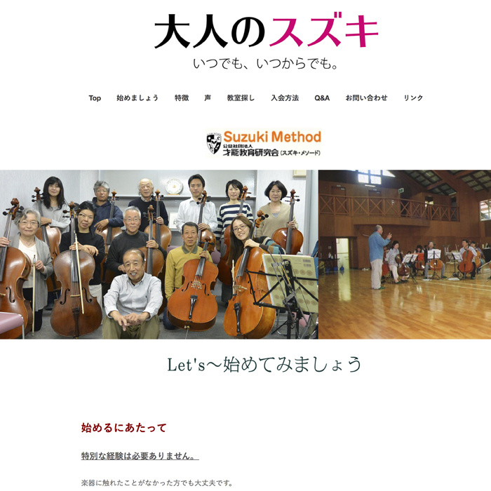 関連サイト スズキ・メソード チェロ科の関連サイトをまとめました。それぞれの画像をクリックすると、そのサイトにリンクします。 スズキ・メソード公式サイト スズキ・メソードFACEBOOK マンスリースズキ 大人のスズキ 鈴木鎮一記念館 国際スズキ・メソード音楽院 スズキ・メソード寄付サイト
