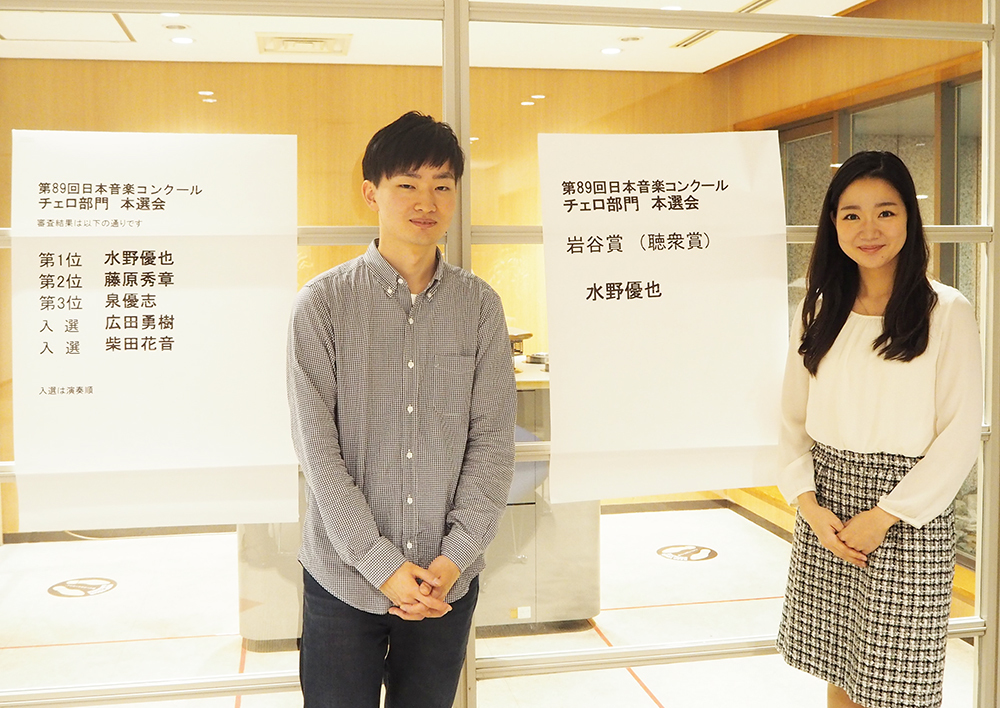 10月27日に東京オペラシティで開催された第89回日本音楽コンクール(主催=毎日新聞社・NHK、特別協賛=三井物産、協賛=岩谷産業)のチェロ部門の本選会は、通常のオーケストラとの共演ではなく、ピアノ伴奏での協奏曲の本選会となりました。その中で第1位を射止めたのが、水野優也さん(関東地区河地正美先生クラス出身)でした。岩谷賞(聴衆賞)、黒柳賞、徳永賞も受賞され、さらにコンクール最終日には、全部門で最も印象に残る奏者に与えられる増沢賞も受賞しました!