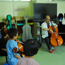 個人レッスン月3回、グループレッスン1回(日曜日に開催)。スズキ・メソード チェロ指導曲集(全音楽譜出版社)を中心に行ないます。