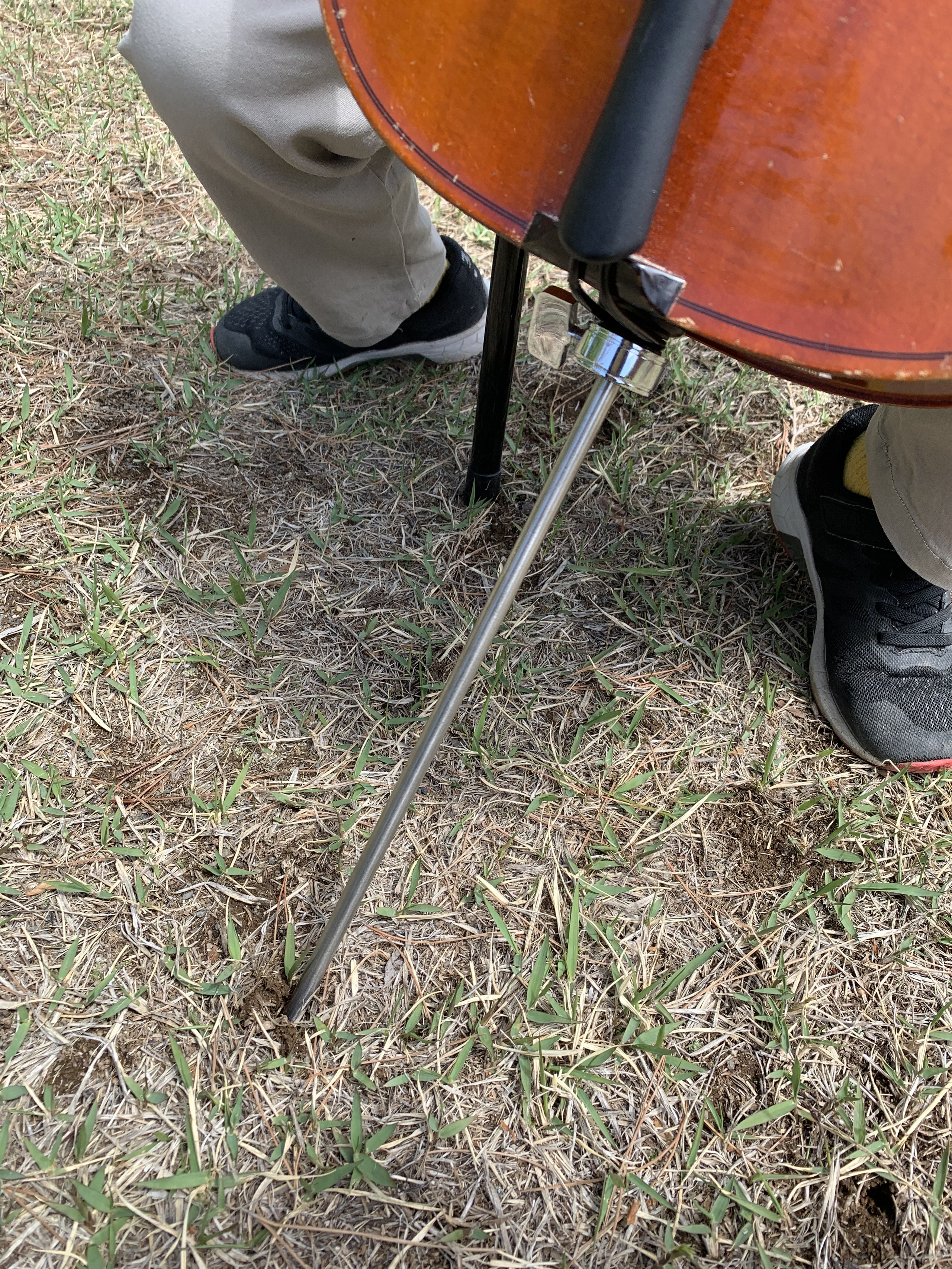 ある生徒さんのお母様が以前ヴァイオリンをされていて、そのヴァイオリンに足をつけてチェロにしてみました。
