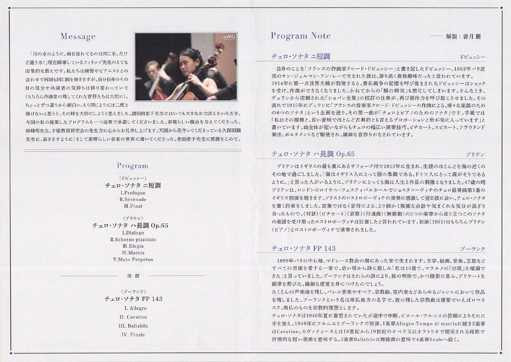演奏曲目は、大幅に変更され、意欲的な作品が並びました。大きく成長された香月麗さんの演奏に多くの拍手が寄せられました。